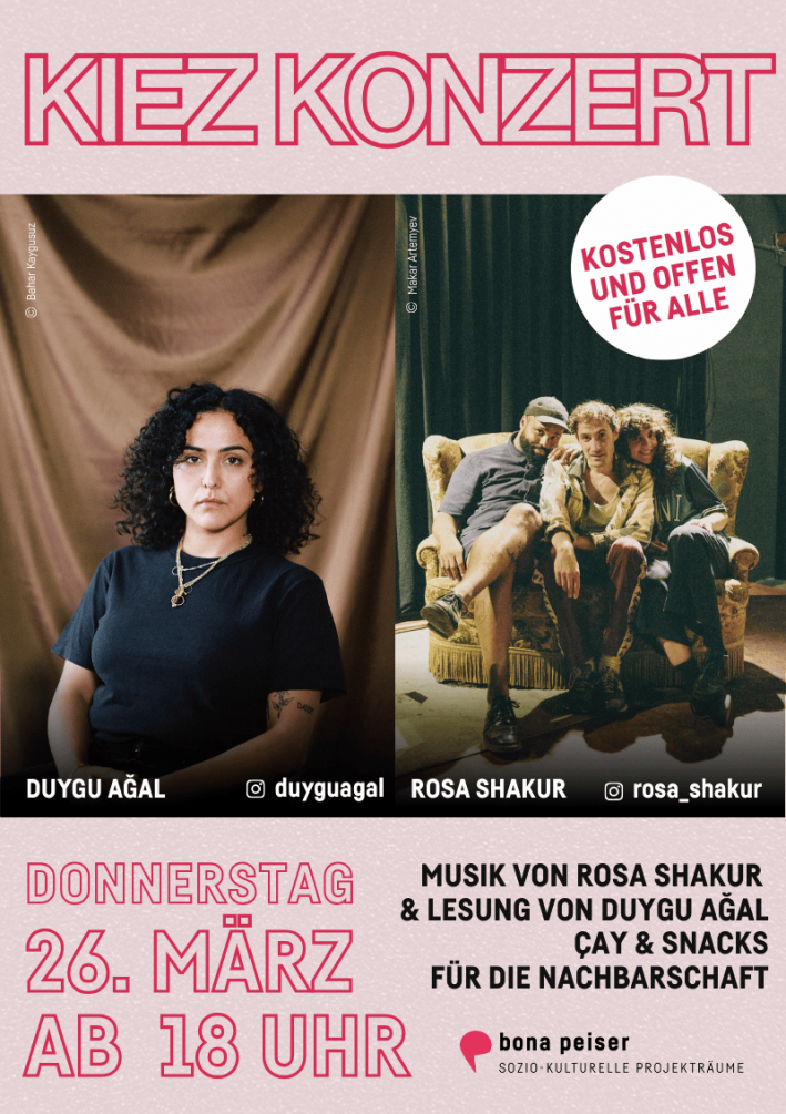 September 2024. Nachdem das interaktive Format „Kiosk of Solidarity“ bereits im August im Quartierspark Ritterstraße/Lobeckstraße großen Zuspruch erhielt, kommt es im September mit zwei weiteren Terminen (Montag, 9./ Dienstag, 10. September) ein weiteres Mal in den Wassertorkiez. Von jeweils 14 bis 18 Uhr gastiert es an beiden Tagen vor den sozio-kulturellen Projekträumen Bona Peiser in der Oranienstr. 72.